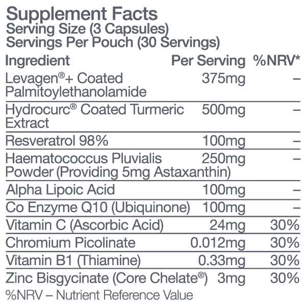 A highly bioavailable form of PEA (Palmitoylethanolamide) clinically studied to reduce inflammation, support joint comfort, and strengthen immune defence - with LipiSperse® technology for enhanced absorption.